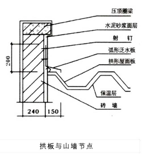 拱形屋頂山墻加弧形泛水板與屋面板連接圖