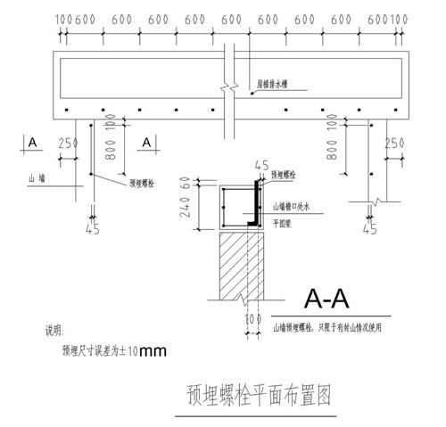 拱形屋頂預(yù)埋件螺栓安裝圖