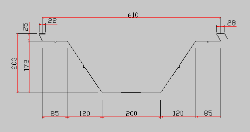 914-610拱形屋頂成型機(jī)版型圖詳細(xì)展示了成型軌跡和板型結(jié)構(gòu),保證了成品板的形狀穩(wěn)定性和適應(yīng)性。