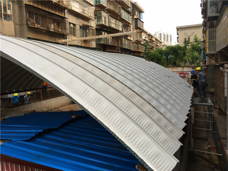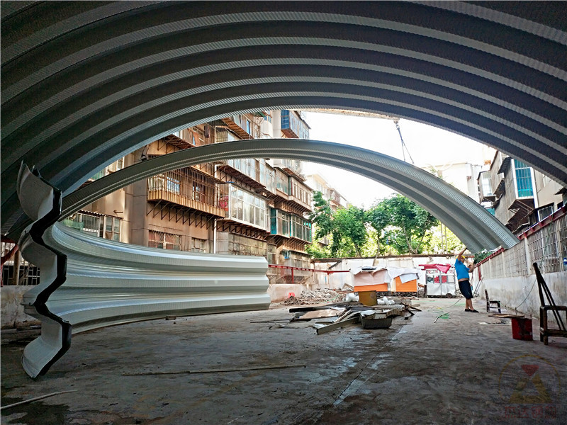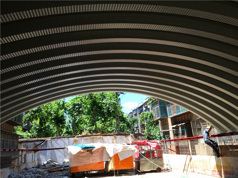 云南昭通12米跨度拱形屋頂車棚翻新工程